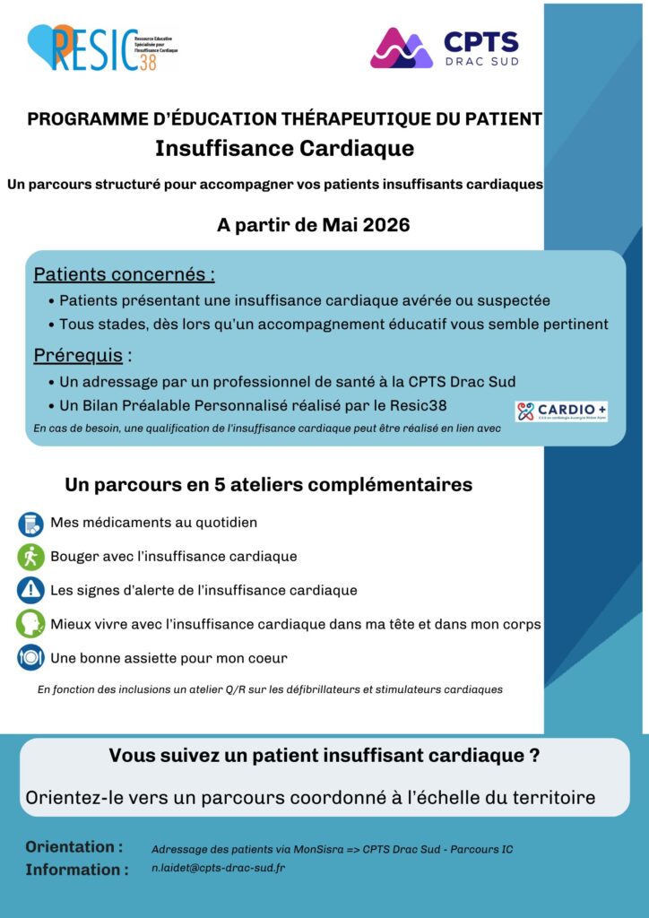 Le programme est celui du RESIC38 – MRSI, un programme qui a fait ses preuves depuis plus de 10 ans. Nous travaillons avec eux de concert pour apporter des informations aux patients selon ses besoins, en individuel ou en collectif.