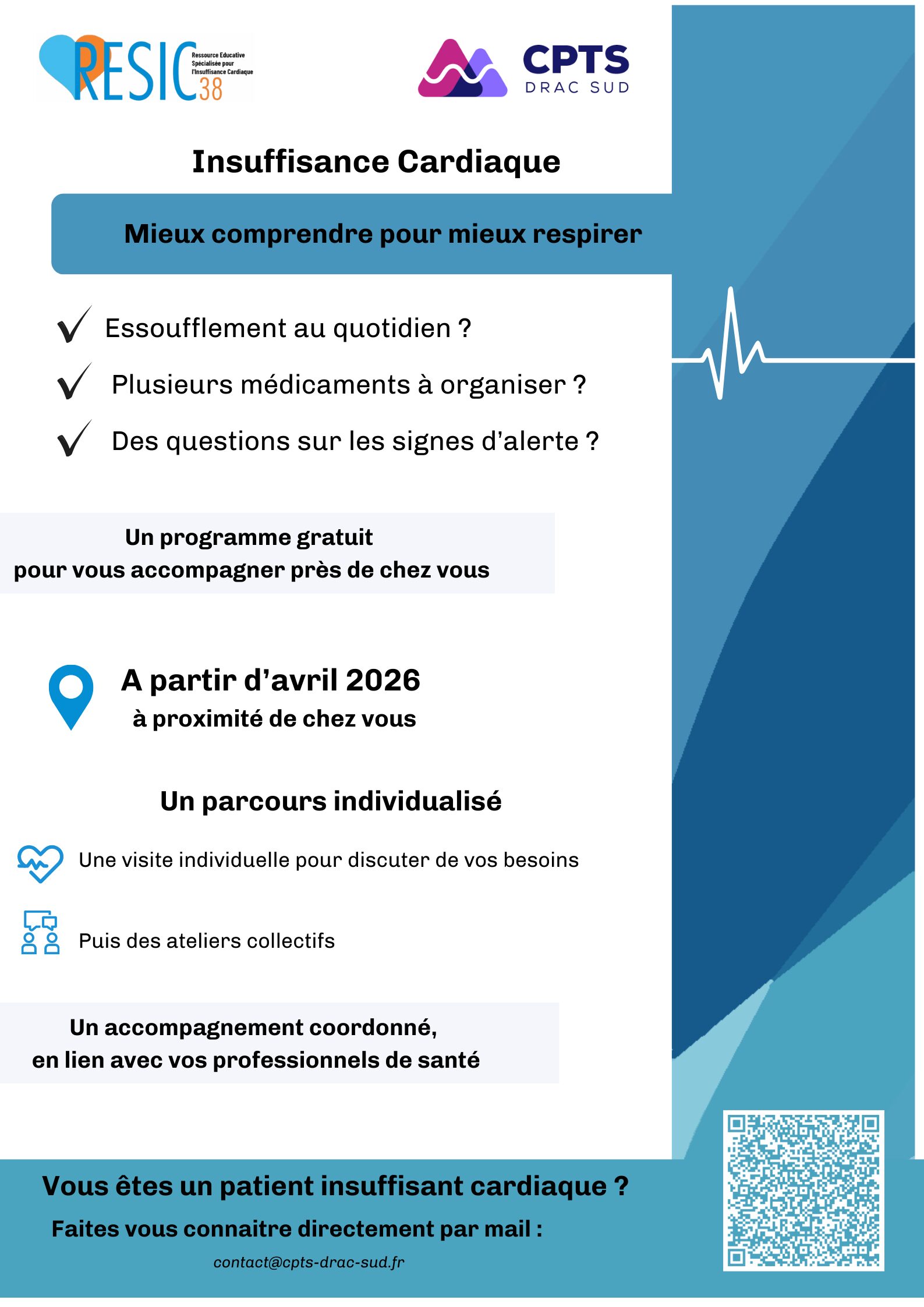 Le programme est celui du RESIC38 – MRSI, un programme qui a fait ses preuves depuis plus de 10 ans. Nous travaillons avec eux de concert pour apporter des informations aux patients selon ses besoins, en individuel ou en collectif.